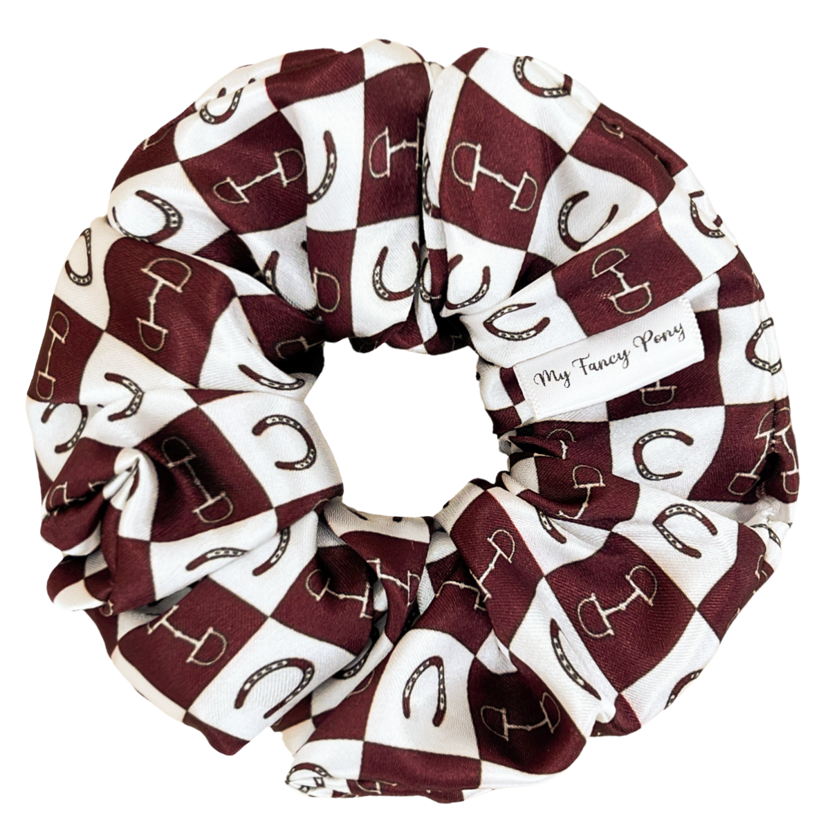 Deep Maroon Equestrian Checkered Satin Scrunchie