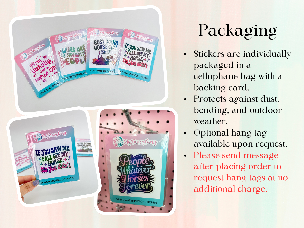Add a splash of personality to your horse-crazy world with these vibrant equestrian-themed stickers! Perfect for girls who ride, love, or simply admire horses, these stickers are designed to celebrate your passion for all things equine.