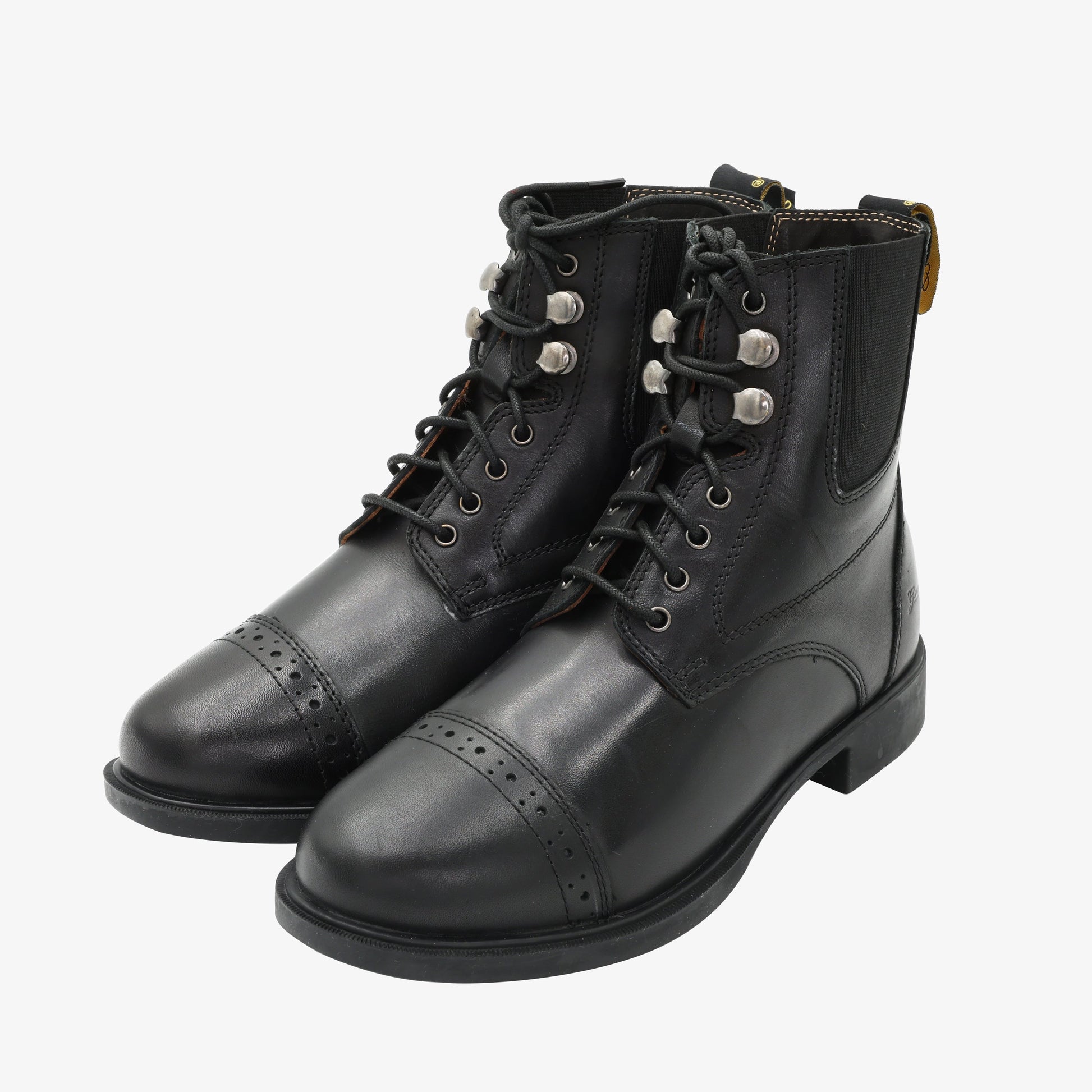 The Grewal Equestrian Lace-Up Synthetic Leather Paddock Boots are an affordable alternative to leather paddock boots. These English riding boots are made with high-quality, flexible synthetic leather that has the look of real leather but is durable in all kinds of weather as they are water-resistant. Wear these horse riding boots with matching half chaps for the look and function of a tall boot! Wear every day for schooling, lessons, trail rides, and to give your tall boots a rest.