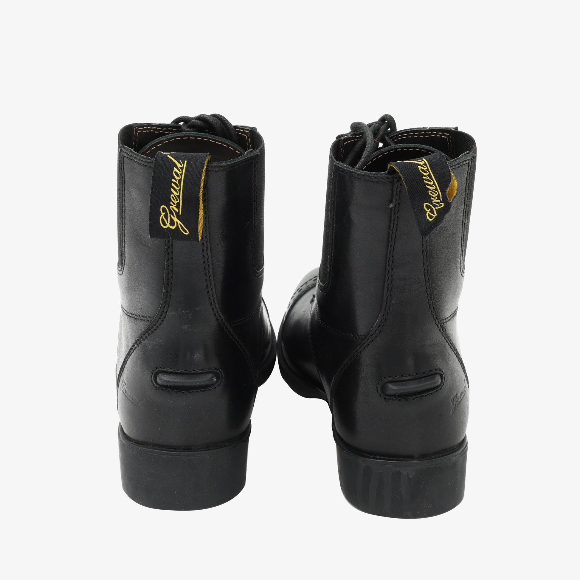 Designed for the rider, made with top-quality, flexible synthetic leather, durable laces, a spur rest, and a pull tab. Choose a pair of matching black Grewal Equestrian Half Chaps to complete your equestrian outfit!