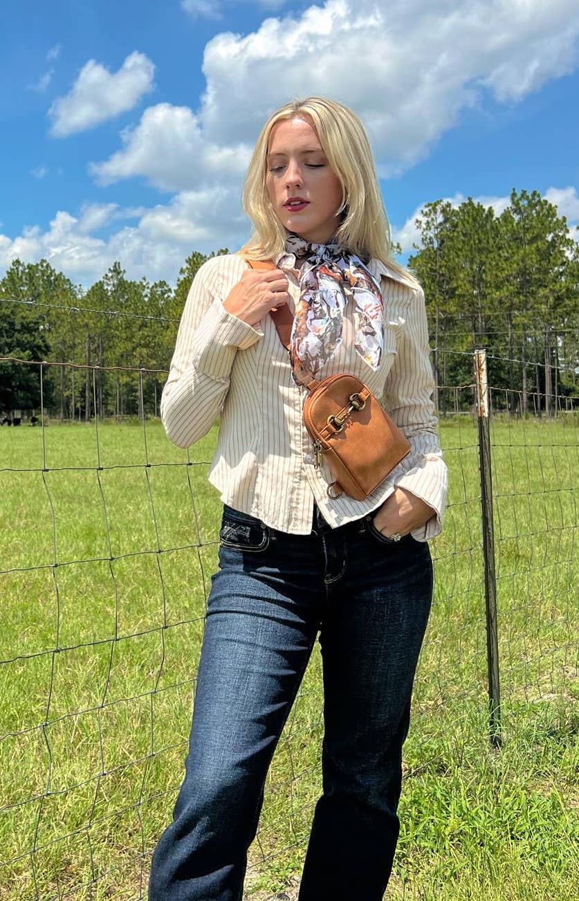 Snaffle Bit Crossbody Phone Bag. Crafted with quality in mind, this bag boasts a 5'' x 7'' x 1.75'' dimension, double zipper pockets, and brass trims for a polished finish. The removable shoulder strap can be adjusted up to 49'' for a comfortable fit, allowing you to wear it cross-body or around your waist. Complete with credit card and bill fold slots.