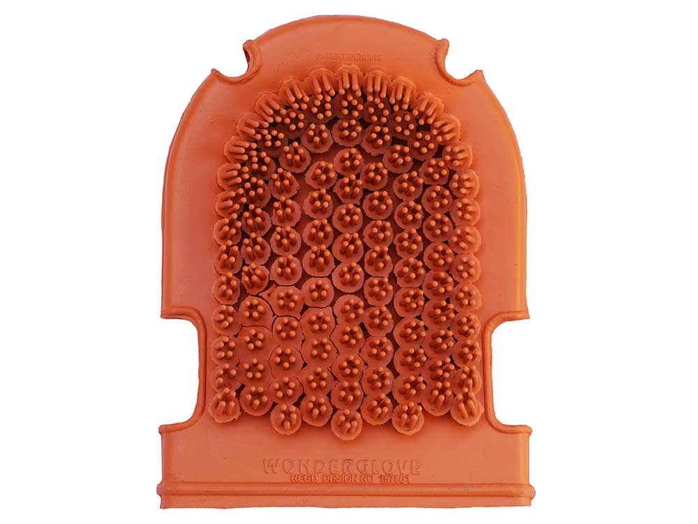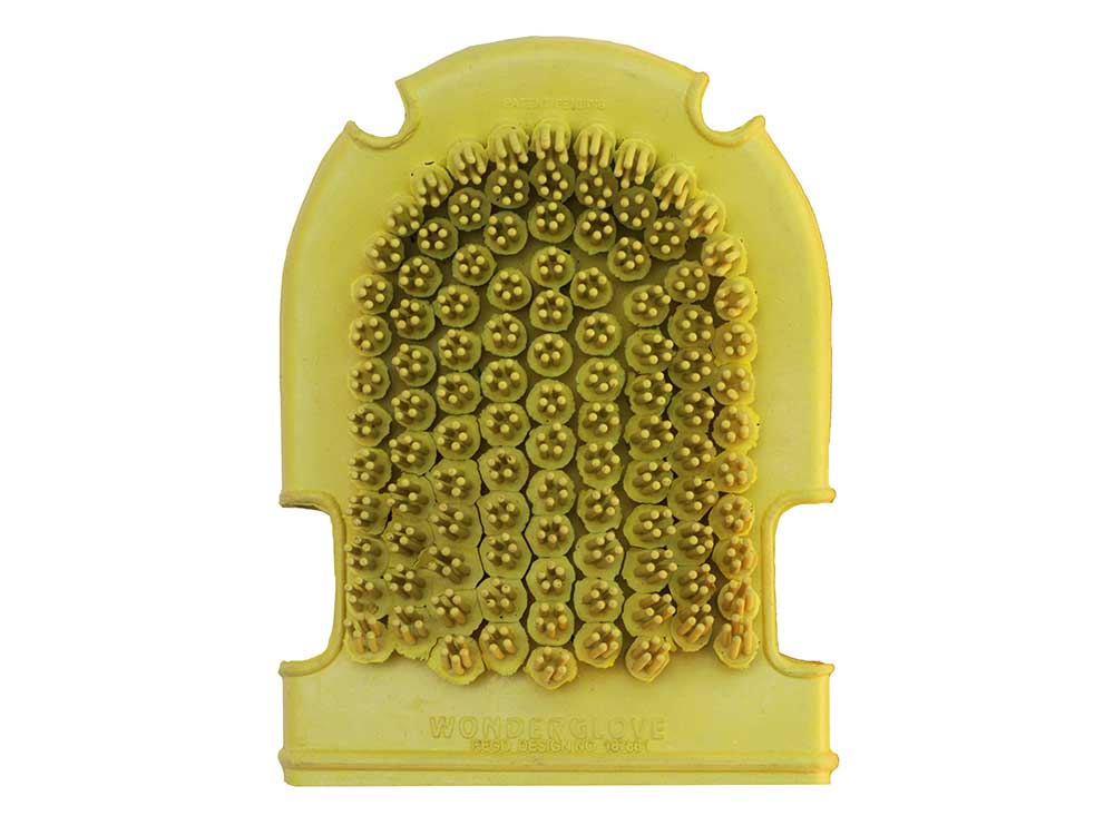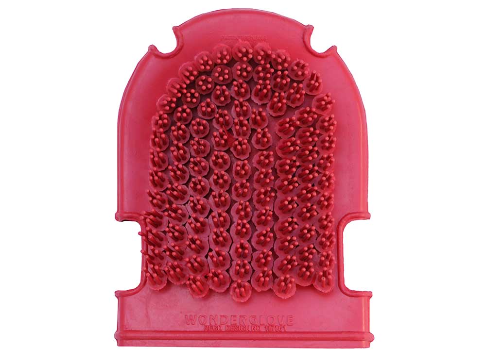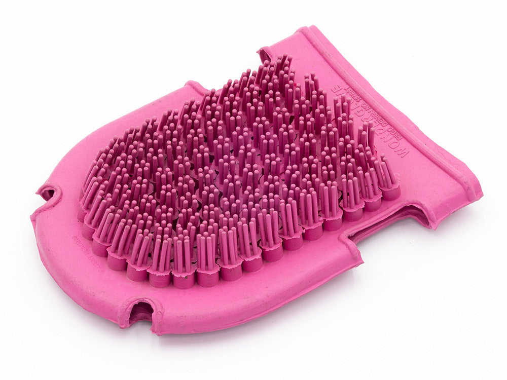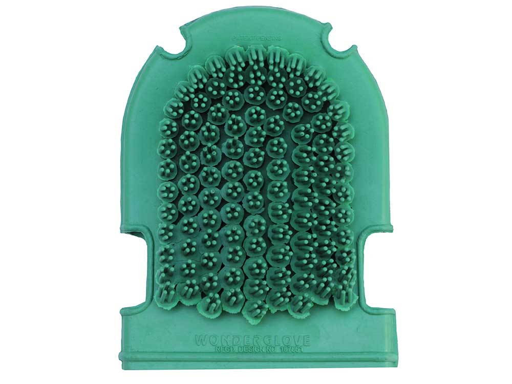 This glove is two brushes in one. The textured bumps on one side function like a curry comb that is perfect for grooming or bathing. Turn the glove over for soft textured bristles that you can use on your horse’s face, body and legs. Use your right or left hand as there is an opening for your thumb on either side.